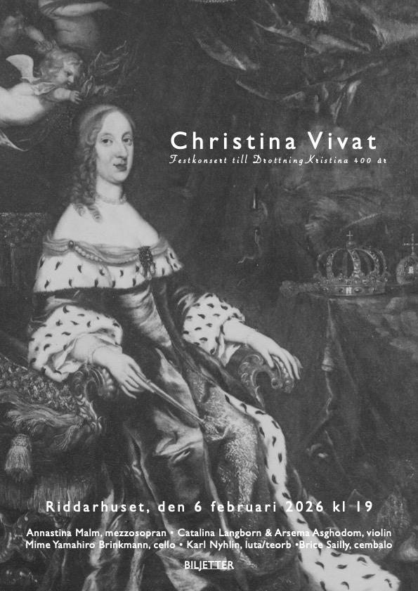 La Reine Christine de Suède (1626–1689) fut l’une des souveraines les plus fascinantes du XVIIᵉ siècle, célèbre pour sa passion pour les arts, la littérature et la musique. Déjà avant son abdication, elle réunissait les meilleurs musiciens d’Europe à sa cour – castrats italiens, instrumentistes français et italiens, ainsi que la célèbre cantatrice française Anne Chabanceau de La Barre. Le répertoire reflétait les dernières tendances venues d’Italie et de France, des airs de cour à Orfeo de Luigi Rossi, et les ballets de cour remplissaient les salles de réception. Des traces de cette musique sont conservées dans les collections musicales suédoises à Uppsala et à la Bibliothèque royale. Même à Rome, Christine s’entourait de musiciens éminents, et des compositeurs tels qu’Alessandro Scarlatti, Alessandro Stradella et Arcangelo Corelli lui ont dédié des œuvres. Elle participa à la fondation du premier théâtre public de Rome où les femmes étaient autorisées à se produire, malgré l’interdiction papale. La musique jouait également un rôle central dans son académie, l’Accademia Reale, où chaque rencontre débutait et se terminait par de la musique. Dans ce programme, nous découvrons les compositeurs et chanteurs qui faisaient partie du cercle de Christine et la musique qui l’entourait – de la cour suédoise, à la conversion à Innsbruck, jusqu’au théâtre Tor di Nona et à sa résidence romaine. La passion de Christine pour la musique fut constante tout au long de sa vie, et elle apparaît de plus en plus comme une figure centrale dans le développement de la vie musicale européenne.